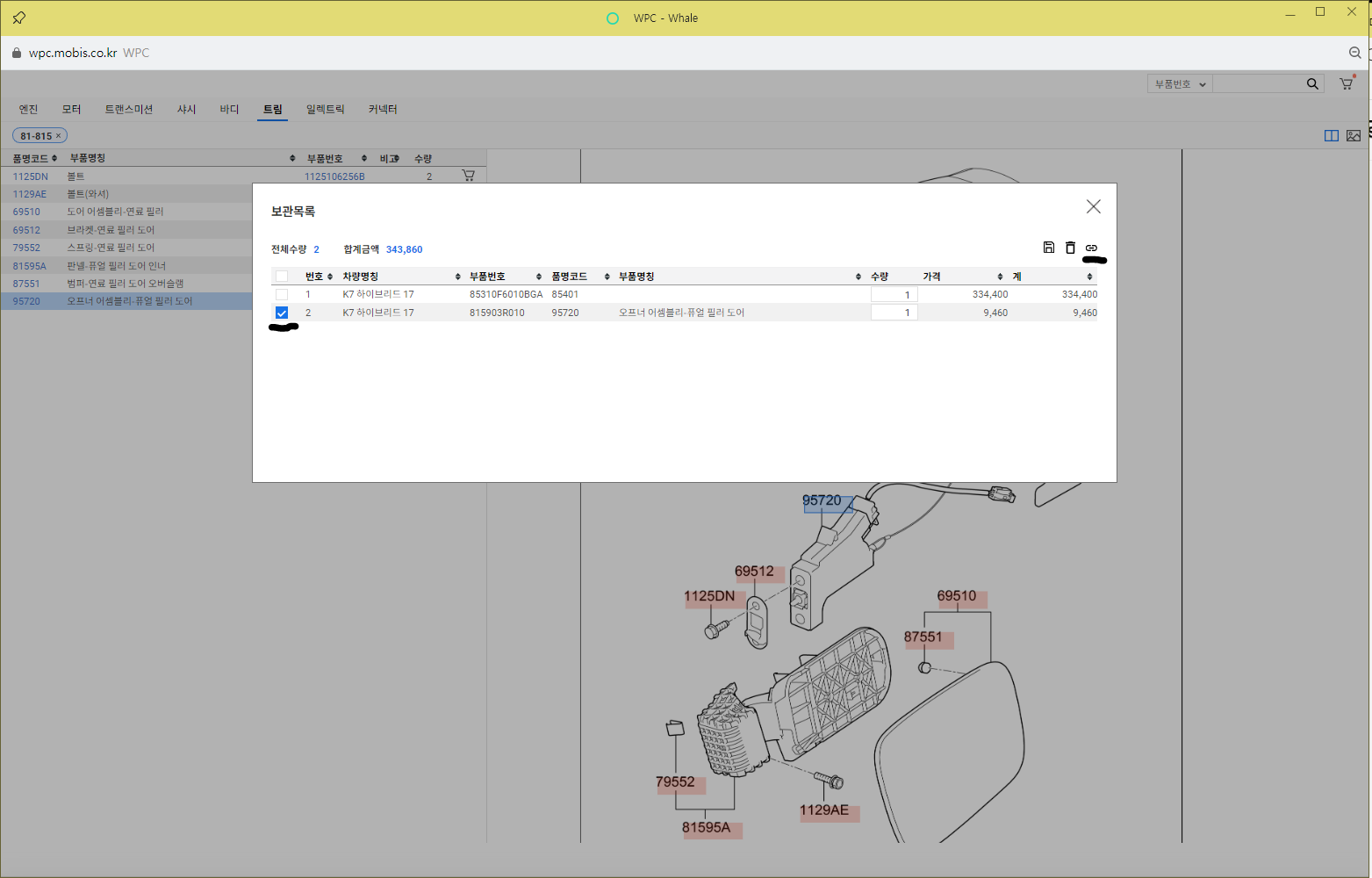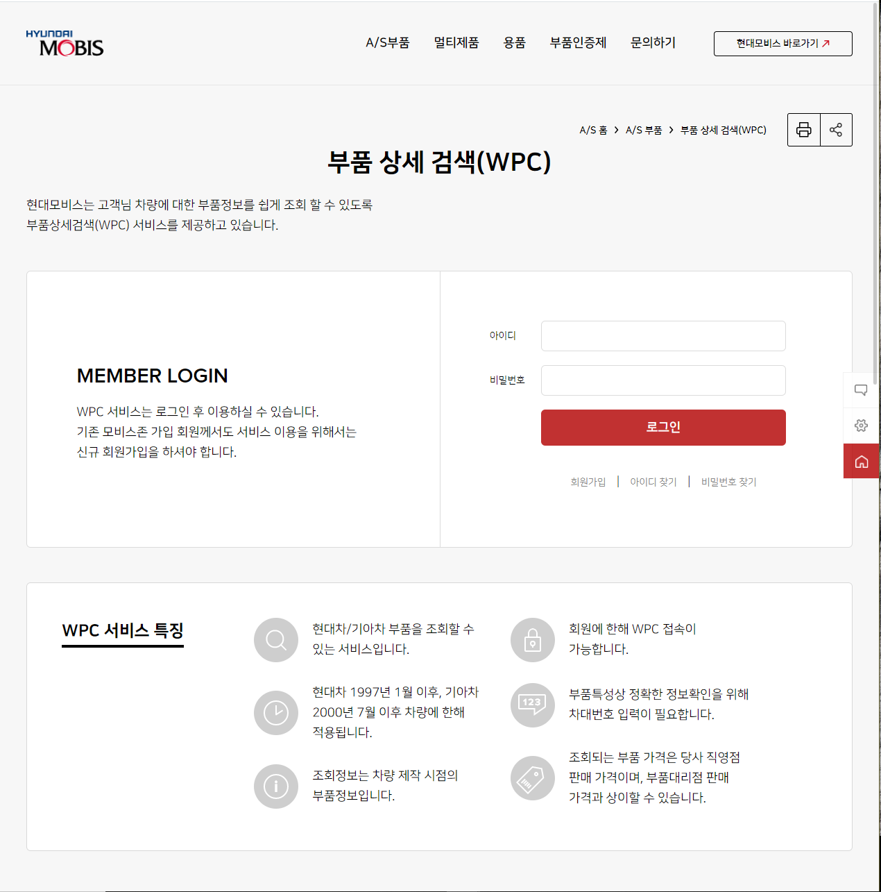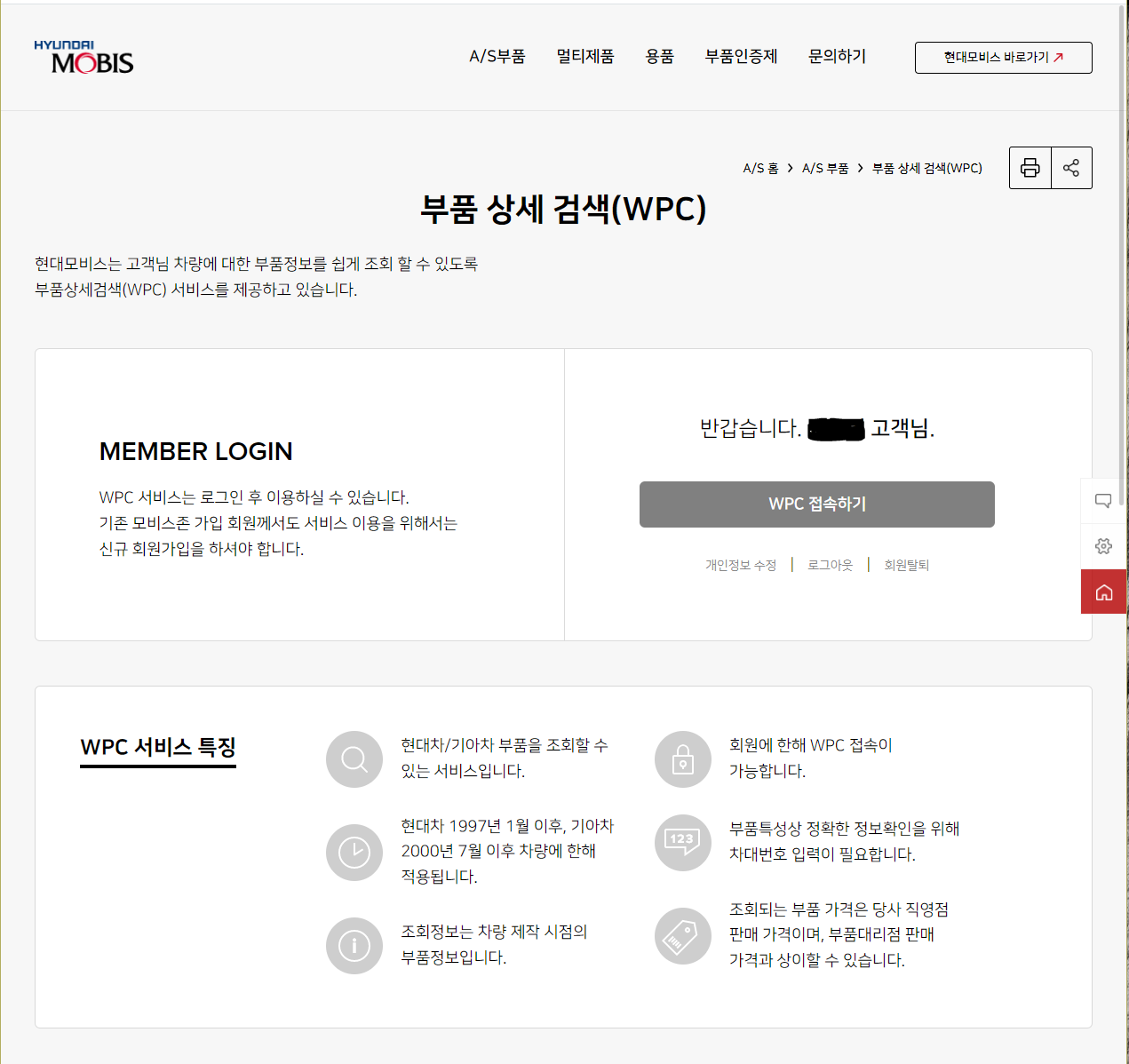 WPC는 본인차량 등록후 ( 차대번호 연식 등등) 본인 차량에 맞는 부품이 조회되는 시스템입니다.