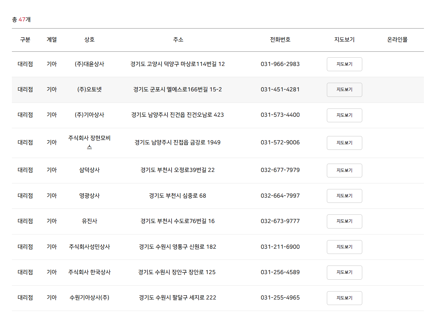 위 사진처럼 검색 링크로 연결됩니다. 그러면 지역과 제조사 설정하고 검색하기